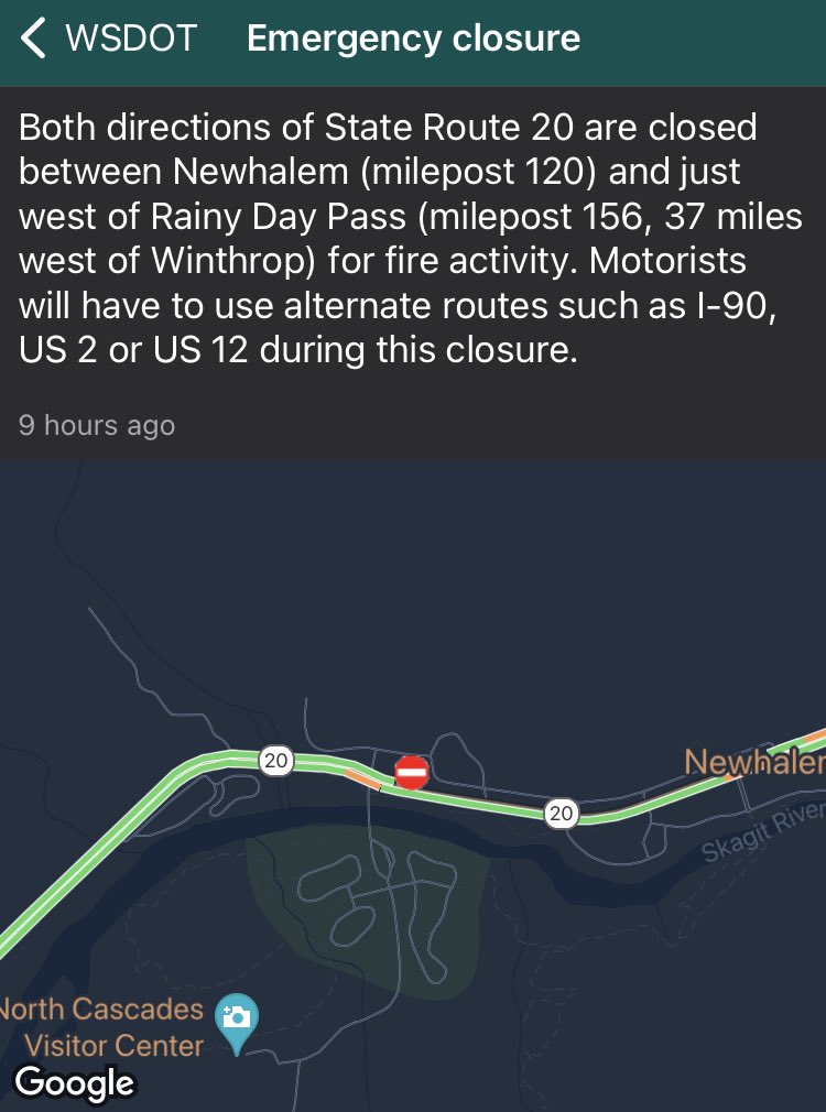 WSDOT North on X: “Sourdough Fire Update 8/6 AM: SR 20 remains